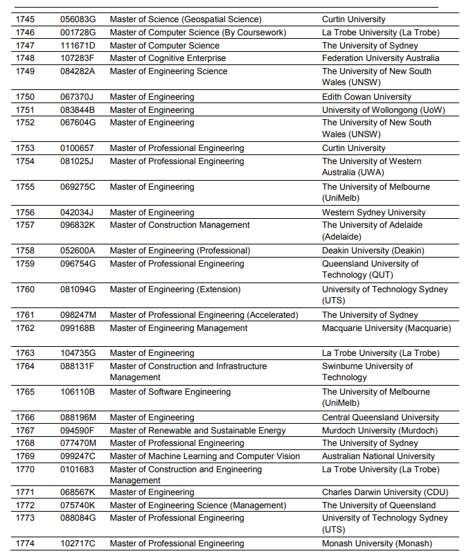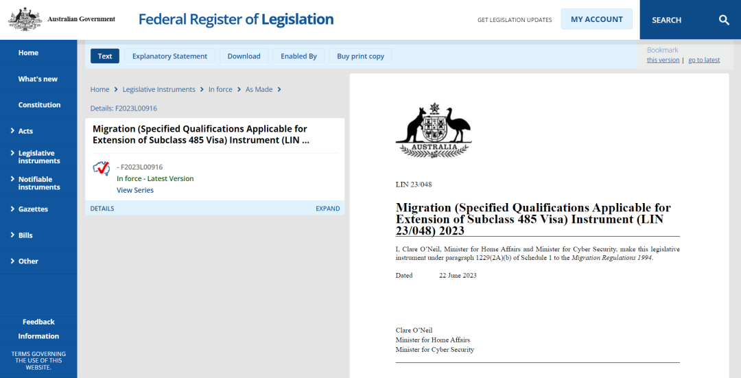 前几天,澳洲政府正式公布了可以获得PSW延长签证的课程清单以及对应的CRICOS Code信息。 ▲ 图片来源于网络 根据最新政策: 本科毕业生PSW时长从2年提高至4年; 硕士毕业生PSW时长从3年提高至5年; 博士毕业生(目前不限定具体领域)PSW时长从4年提高至6年; ▲ 图源:澳洲教育部官网 在之前的消息中我们已经了解到工签延长政策将适用于健康、教学、工程和农业四个领域,同时澳洲政府在此前也给出了一份指导清单。 目前详细名单终于出炉,包括院校、专业、CRICOS Code等信息,接下来就跟易酱一起了解一下吧。 如何查询? 第一步:登录澳洲政府官网 在网站内搜索“Migration (Specified Qualifications Applicable for Extension of Subclass 485 Visa) Instrument (LIN 23/048) 2023” 或者,搜索以下链接也可以查询 https://www.legislation.gov.au/Details/F2023L00916 ▲ 图片来源于网络 第二步:确认课程名称和CRICOS Code 课程名称比较好确认,CRICOS Code大家可以通过官网查询。 比如说墨尔本大学的Bachelor of Science,可以在官网看到CRICOS Code是002153M。 ▲ 图片来源于网络 回到澳洲政府公布的名单,该课程入选了本次工签延长名单。 ▲ 图片来源于网络 同理还有UNSW的Master of Materials Technology课程,CRICOS Code是085912A。 ▲ 图片来源于网络 同样也是入选了本次工签延长名单。 ▲ 图片来源于网络 帮大家整理了部分热门课程名单。 计算机相关课程 ▲ 图片来源于网络 工程相关课程 ▲ 图片来源于网络 健康相关课程 ▲ 图片来源于网络 教育相关课程 ▲ 图片来源于网络 本次公布的名单比较长,大家也可以下载文档后快速查询,或联系咨询顾问老师了解。 在最新公布的QS排名中,澳洲大学齐齐发力,排名有大幅度上升,墨大、悉尼和UNSW纷纷进入世界前20。 加上非常吸引人的工签延长政策,24年澳洲留学将会更加火热,准备申请的小伙伴要提前做好准备哟~ 对于以上内容如有疑问,欢迎咨询柳橙国际顾问老师。 免责声明:我们尊重原创,封面及文中图片影像版权归属原作者所有,如有侵犯您的权益请及时联系我们删除 ► 2023开学季加拿大留学首次入境保姆级攻略!真的是纯干货! 了解更多院校信息,请持续关注柳橙国际 为留学同行合作提供最完善的支持和服务,帮助了解最新海外院校动态、热门课程、留学政策及干货知识,尽在柳橙国际!详情请咨询:mkt@51liucheng.com 公众号