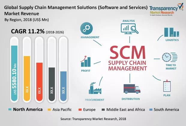 以SCM(软件服务)为例 2018-26产业在全球范围内呈持续增长趋势。(p.s. CAGR复合增长率可用于衡量产业长期增长的潜力。)
