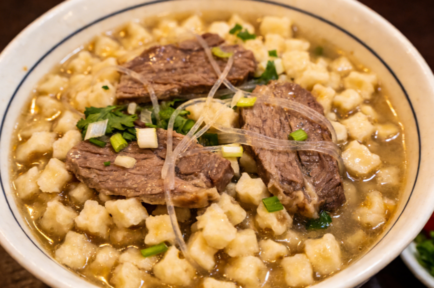 美 食 西安美食声名远扬, 堪称碳水爱好者的天堂。 面食种类众多,不限于: BiangBiang面、裤带面、臊子面、 辣条子、油泼面、牛肉泡馍、 羊肉泡馍、小炒泡馍、牛肉饼、 肉夹馍、油茶麻花... 肉夹馍, 外酥里嫩的馍夹着剁碎的卤肉, 一口咬下去,肉香四溢, 让人欲罢不能。 羊肉泡馍,掰得细碎的馍 泡在鲜美的羊肉汤里, 再加上粉丝、糖蒜, 一口汤一口馍,暖身又暖心。 Biangbiang面: 陕西八大怪“面条像裤带”, 面条筋道爽滑,淋上油泼辣子, 香气扑鼻,一口下去超满足! 葫芦鸡: 外皮酥脆到掉渣,内里鲜嫩多汁, 蘸上干碟,香而不腻, 是陕西宴席上的经典硬菜。 甑糕: 糯米、红枣、红豆蒸制而成, 软糯香甜,甜而不腻, 街头小摊就能买到, 是老西安的早餐首选; 水盆羊肉: 鲜美的羊汤搭配薄薄的羊肉, 配上月牙饼,一口汤一口饼, 清爽不腻。 西安烤肉: 夜晚的灵魂慰藉, 烤盐筋、烤腰子、烤油馍, 撒上孜然、辣椒,香气扑鼻, 搭配冰峰汽水,快乐翻倍; 除了这些,还有凉皮、米皮、 擀面皮、熏肉大饼、肉丸胡辣汤、 梆梆肉、酸汤水饺、豆腐脑等美食, 也都各具特色,值得一试。